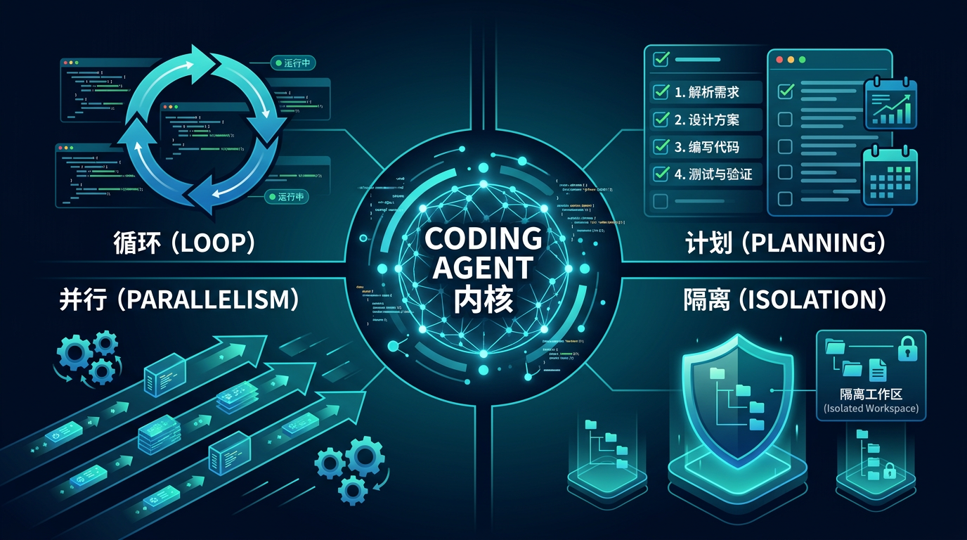 很多人以为 coding agent 的秘密在更强的模型,其实更关键的是:循环、工具、状态、并行和隔离。